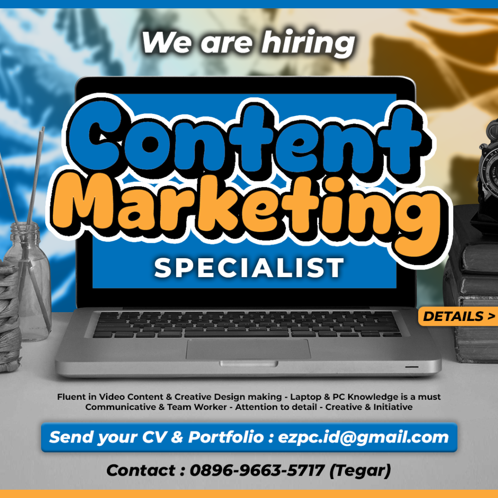 OPEN LOWONGAN PEKERJAAN: CONTENT SPECIALIST EZPC adalah layanan perbaikan laptop dan PC yang berfokus pada solusi cepat, transparan, dan ramah untuk pengguna dari kalangan mahasiswa hingga profesional di Surabaya. Kami membantu masyarakat mengatasi masalah komputernya tanpa ribet, sambil membangun komunitas digital yang informatif dan terpercaya. Sekarang kami mencari Content Specialist (Videografi & Editing) yang siap turun langsung membuat konten seperti mengambil footage, mengedit, dan membuat video singkat yang menarik untuk sosial media kami.